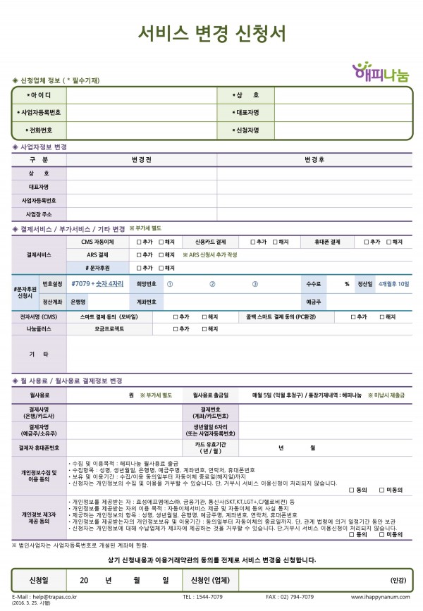 [해피나눔] 서비스변경 신청서